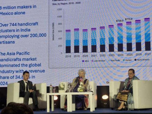 ** นางจิรภา เชื้อดวงผุย พัฒนาการจังหวัดขอนแก่น พร้อมด้วย นางมาลินี เมตตันตคุปต์ ผู้อำนวยการกลุ่มงาน และพัฒนาการอำเภอ เข้าร่วมกิจกรรมการประชุมวิชาการและเยี่ยมบูธจำหน่ายสินค้าของผู้ผลิต ประกอบการ OTOP จังหวัดขอนแก่น ในงาน World Ikat Textiles Symposium 2025 ภายใต้แนวคิดหัวข้อหลัก (Theme) ของงาน TIES for TOMORROW : Weaving Heritage into Sustainable Futures "ทอภูมิปัญญา ผูกสายใยแห่งความยั่งยืน โดยมีหัวข้อการประชุมวิชาการประกอบด้วย