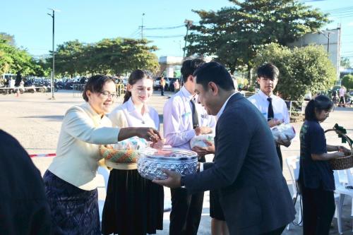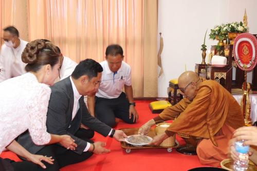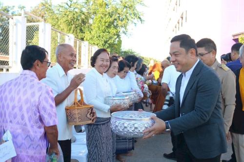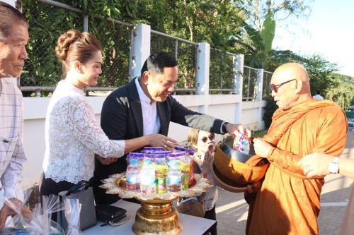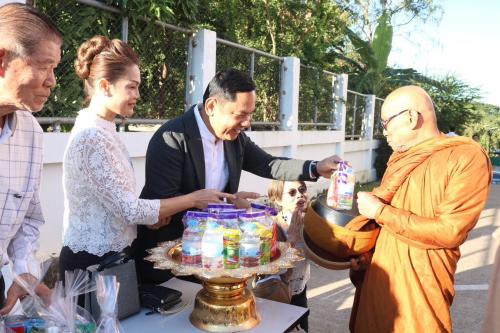 นายกรชวาลวิชญ์ ชัยพีรวัส นายอำเภอน้ำพอง ร่วมทำบุญตักบาตร ทอดผ้าป่าสามัคคี สมทบทุน